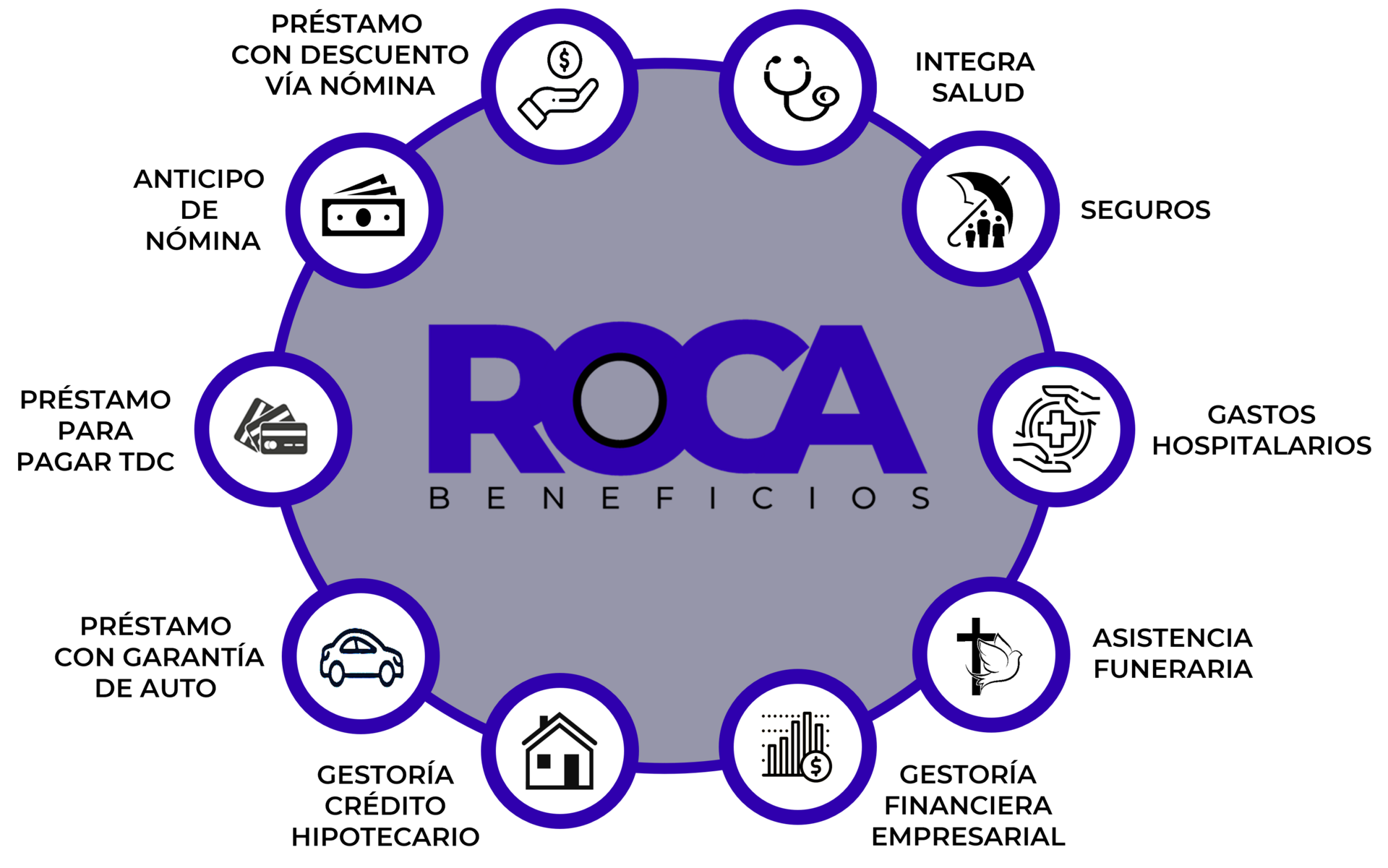ROCA Beneficios, S.A.P.I. de C.V. Una Empresa mexicana integrada por un equipo de Profesionales y expertos en diferentes áreas enfocados en ofrecer a las Empresas los mejores beneficios y soluciones integrales a sus colaboradores contribuyendo así al binestar laboral, económico, físico y mental.